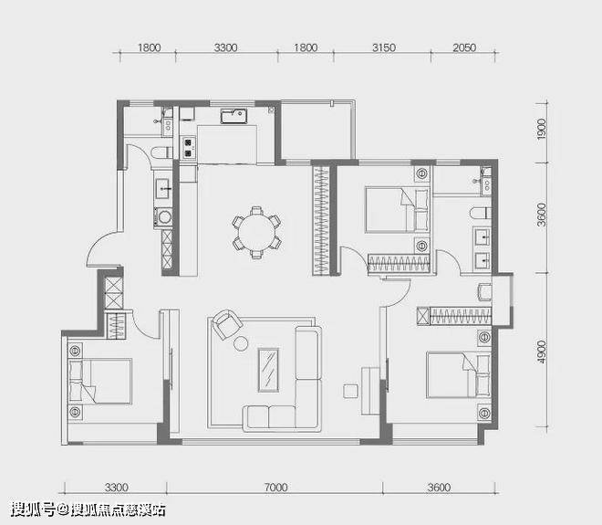 重点说说约143㎡,这个改善的黄金面积段,海河玺设计了3款户型。