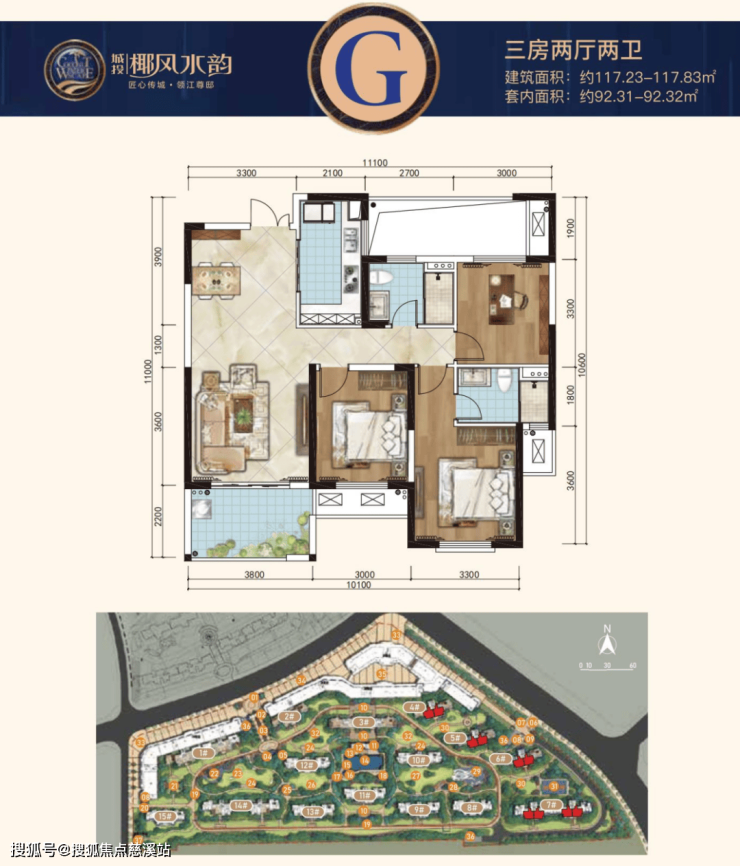 G户型:建面约117.23-117.83㎡三房两厅两卫