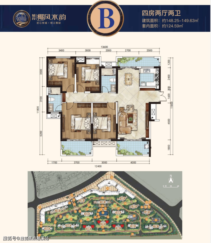 B户型:建面约148.25-149.63㎡四房两厅两卫