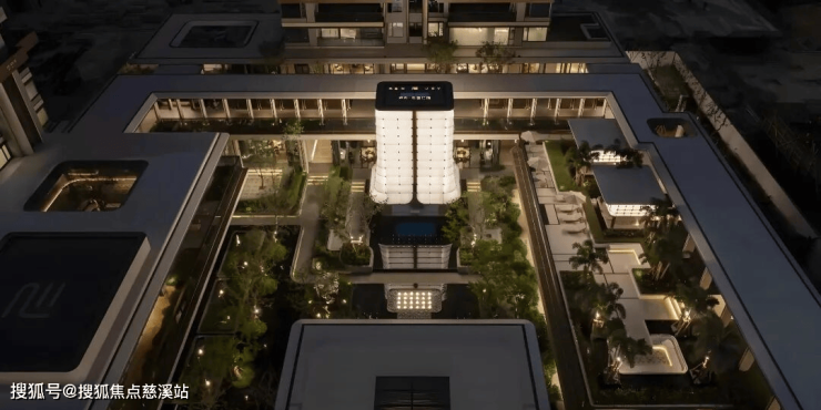 下沉庭院并非单纯的景观点缀,而是串联社区功能的核心枢纽,与会所、归心长廊、中庭花园无缝衔接,形成“归心长廊→下沉庭院→中庭花园”的渐进式景观动线。庭院以镜面水景为核心,水面如镜,倒映着周边的绿植与建筑,微风拂过,波光粼粼,仿佛将海棠湾的海水引入社区,自带静谧松弛感。
