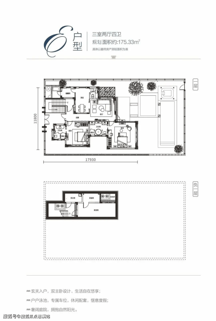 E户型:三室两厅四卫 / 规划面积约175 ㎡