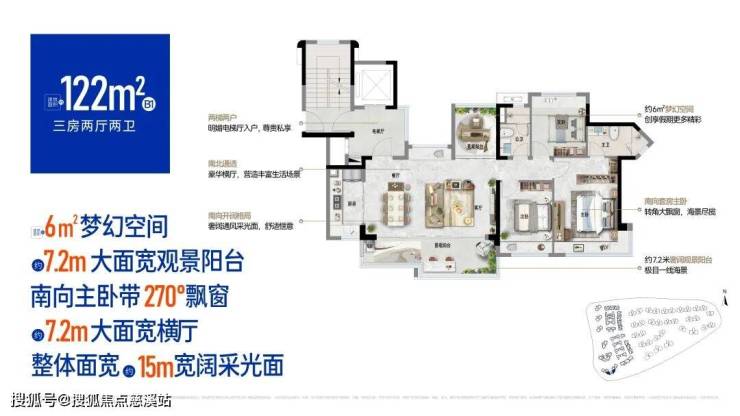 约5.2-7.2米面宽观景阳台,尽享宽阔视野