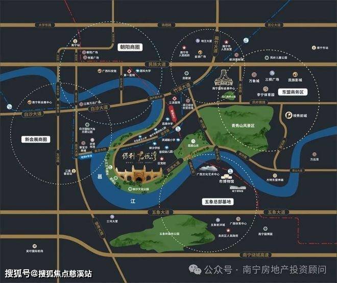 项目位于邕江九湾第五湾首,邕江流淌至此呈“S”形环保之势如帝王玉带缠腰,更藏青龙白虎、文昌官星、九曲水、贝壳、来龙去脉等顶级风水格局。