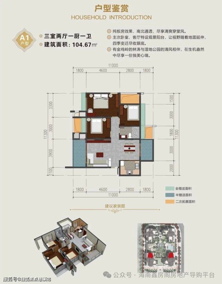 104.67㎡三房二卫(赠送17.50㎡)