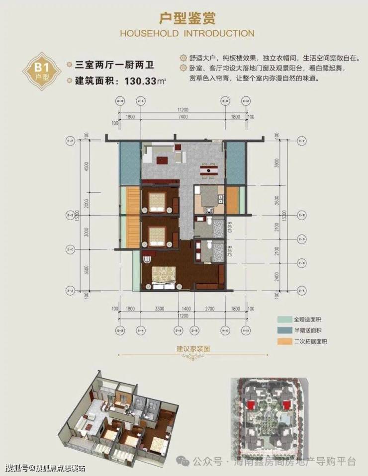 130.33㎡三房两卫(赠送20.27㎡)