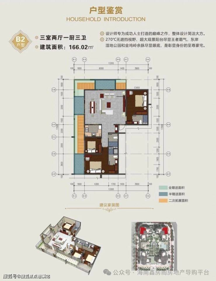 166.02㎡三房三卫(赠送31.04㎡)