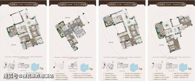 366㎡四房五卫全套卧,独门独户设计,配备约100㎡双空中观湖庭院,前庭后院布局合理,主卧套间与独立家政套间形成双流线,满足主人与生活服务的独立需求,双客厅设计也为家庭成员提供了更多私密空间。