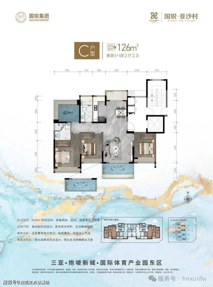 国锐·亚沙村六大价值亮点🌟项目由18栋小高层和约3.3万方商业街区组成,是以居住功能为主,集商业、生活配套、体育康养等功能为一体的度假生活城,致力打造三亚新城旅居度假新标杆。