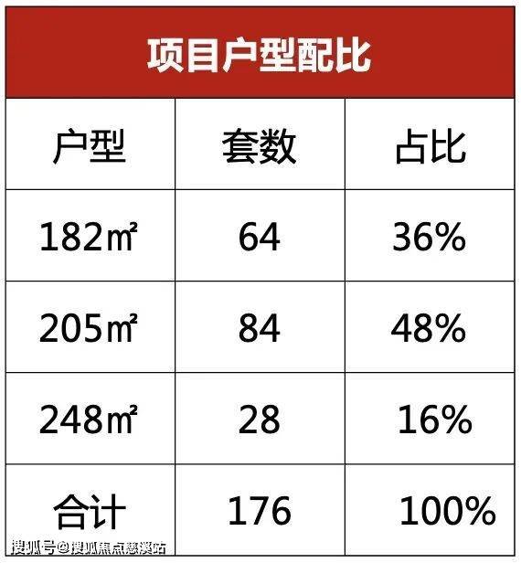 项目容积率1.5,绿化率33%,规划12栋5-8层洋房,共176套房源,户型面积182、205、248㎡,其中有16套248㎡房源为空中庭院花园户型,毛坯交付。