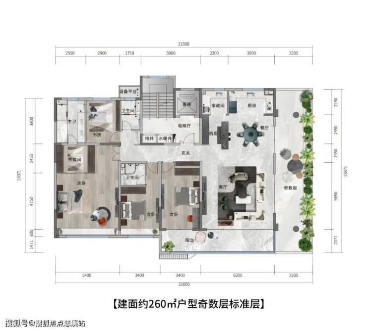 1#、6#、11#楼,为7层洋房,户型面积为248平。