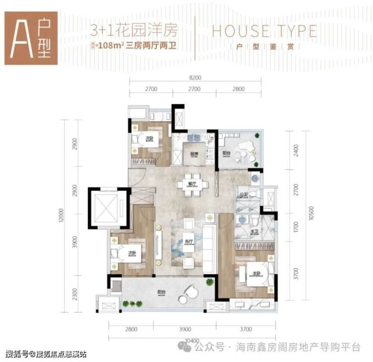 108㎡:3+1房2厅2卫2阳台