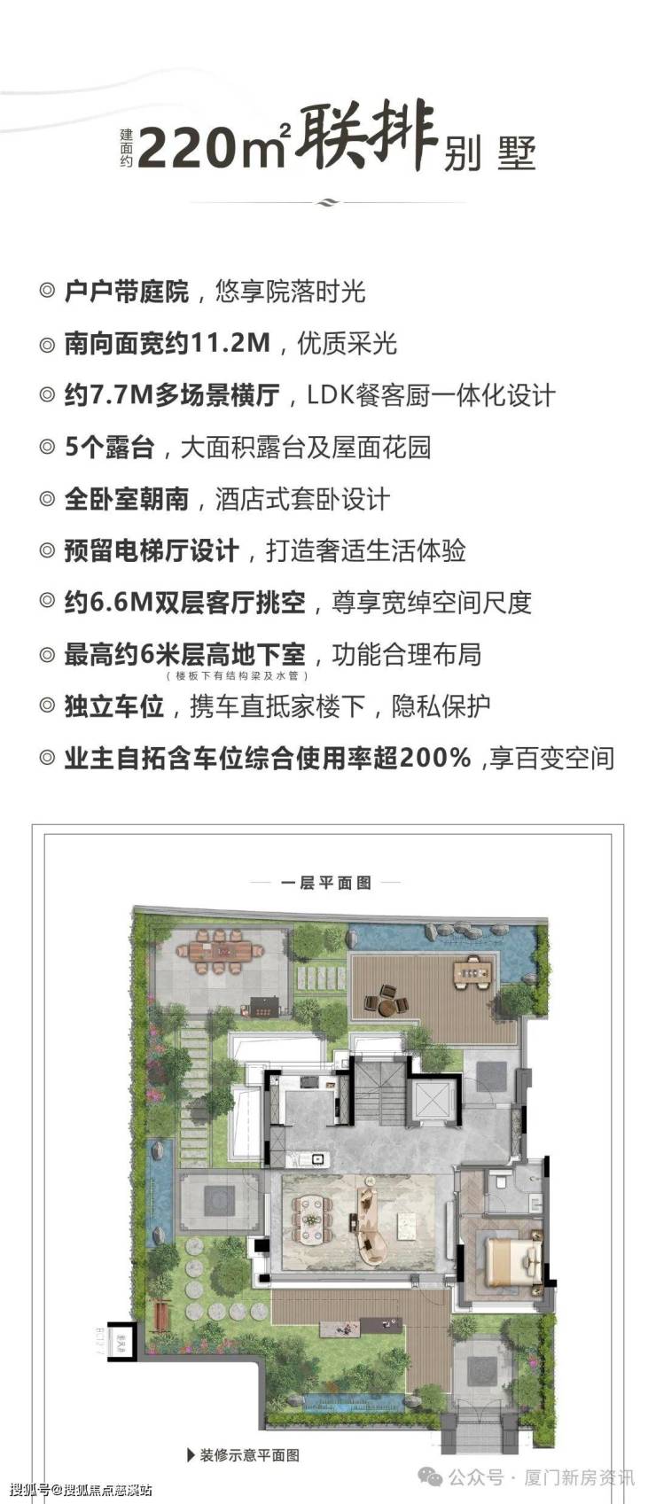 建发湾墅立于乐活岛岸线首排,约3500米宽幕湾海视野,打造约187-220㎡两个户型,王府中式藏品,仅49套房源稀缺性极强,项目是联排纯墅区