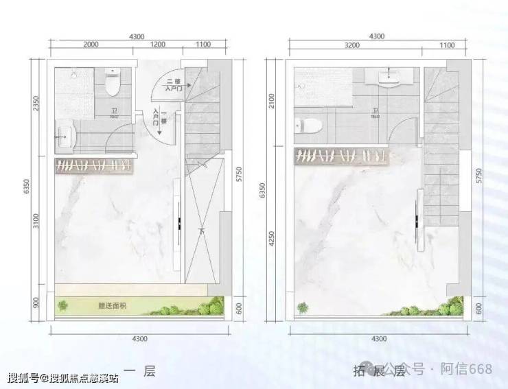 2、产品为复式公寓,买一层送一层,挑高5.5米。
