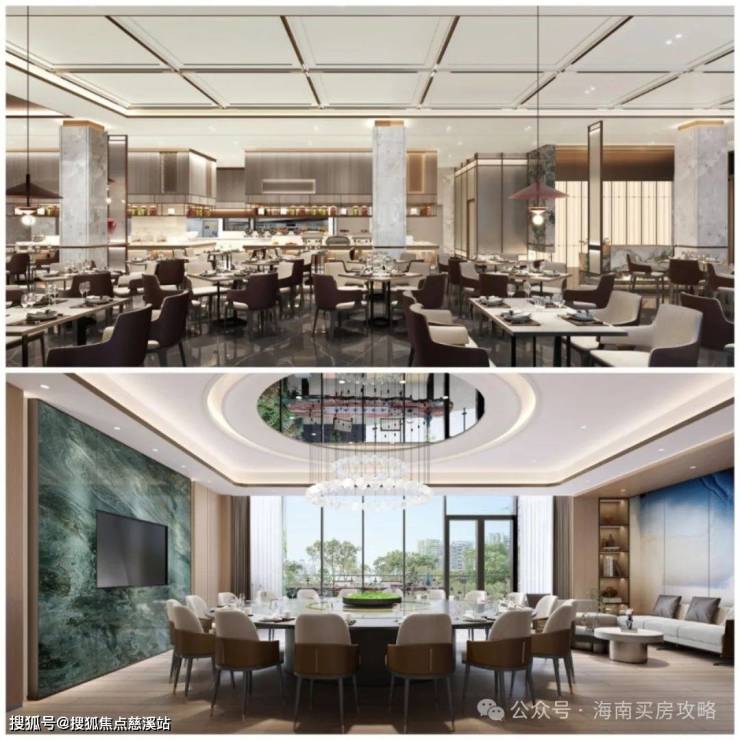 多元餐厅: 社交会客进阶空间承接多元会客功能,亲友接待、商务会谈、节日聚会等皆可,缤纷美味犒赏,延展志趣圈层的精质体验,提供多元社交场景。