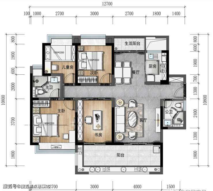 独立书房与阳台相连,书香侵染满堂,闲适自在心间;
