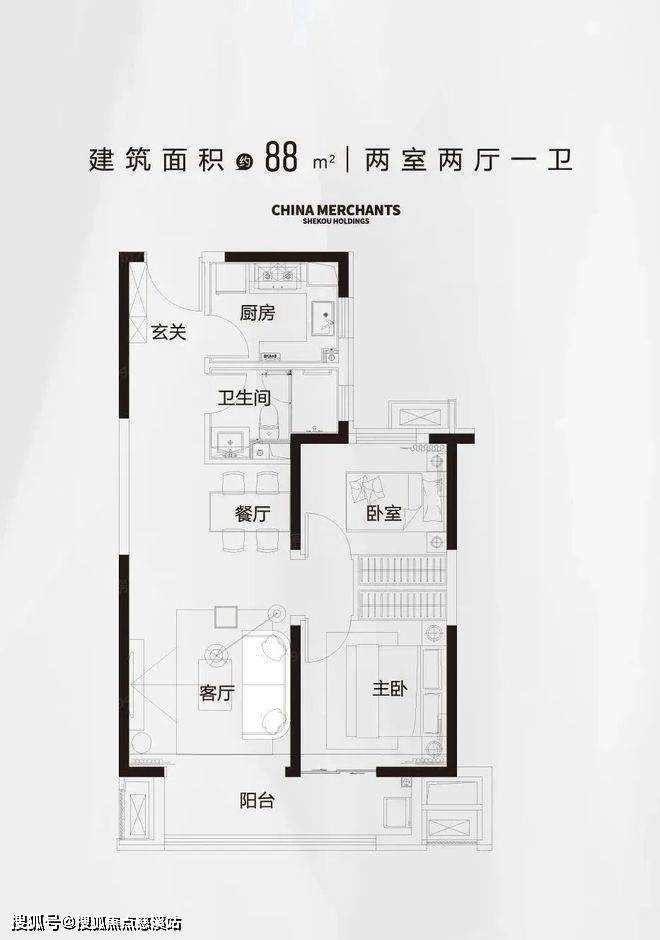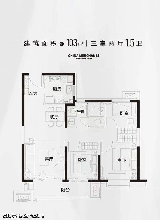 优点:联通大阳台,采光通风效果好;户型开阔方正,动静分区,居家动线合理。