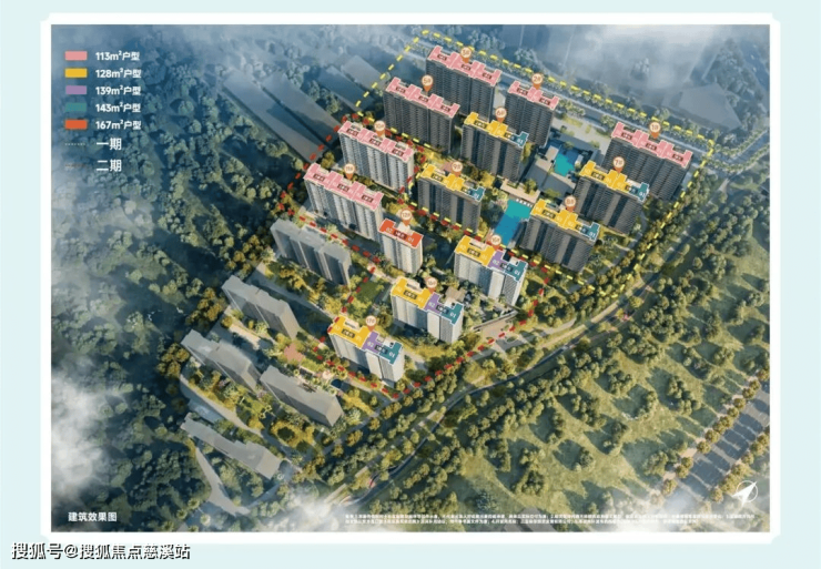 户型:建面约113-167㎡,涵盖三至四房,独梯入户,南北双阳台设计,得房率高。