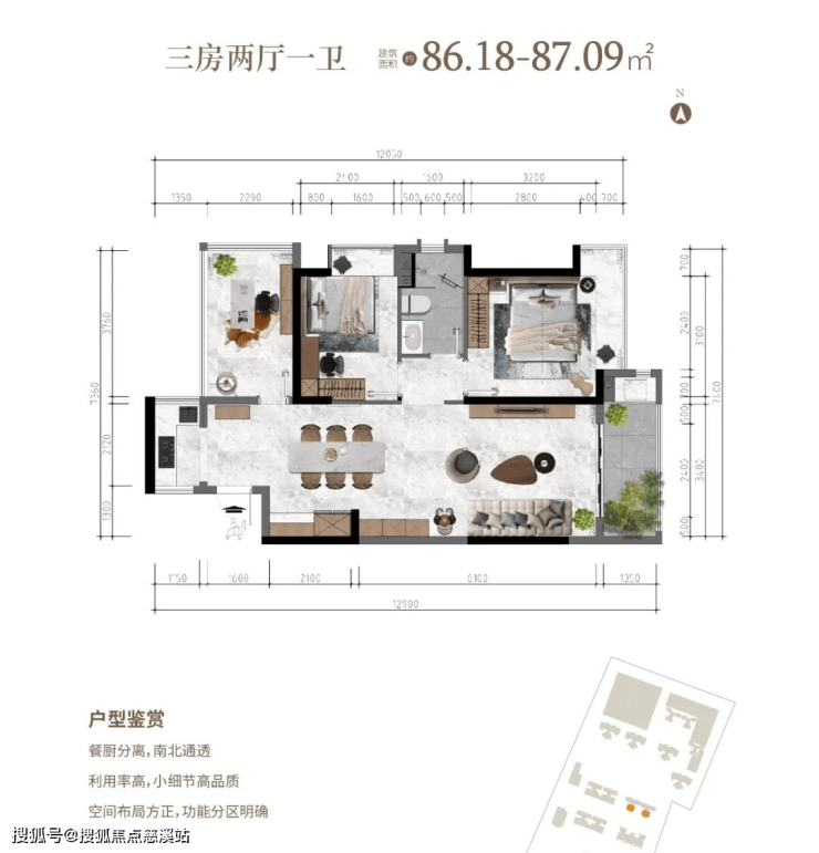三房两厅 建面约86.18-87.09㎡