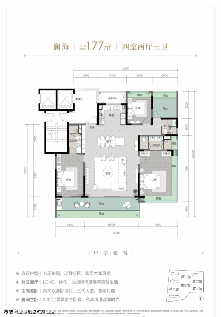 建面约177㎡为四室两厅三卫,真正的奢居产品。