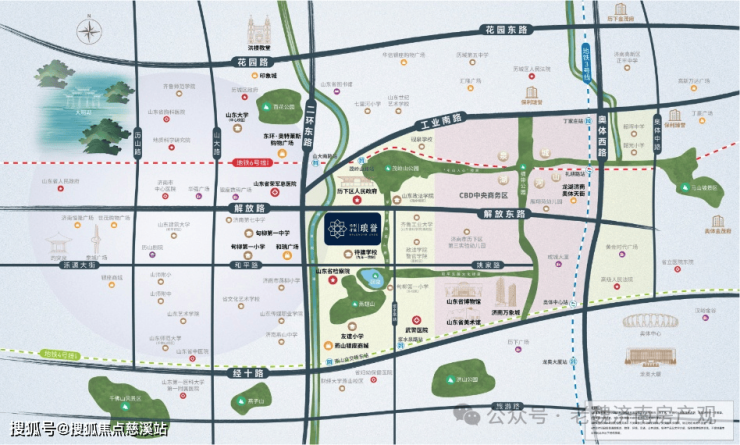 CBD西区,茂岭山西侧,位置绝对是核心板块、核心地段;未来的成长空间值得大家期待。该项目为保利拿地,与金茂合作开发。项目位置:历下区解放东路与二环东路交叉口东南方向