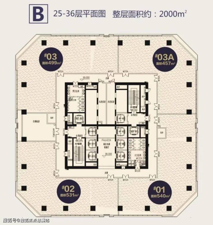 建筑总层:A/B座地上36层、C栋23层、地下3层;避难层:11层、24层