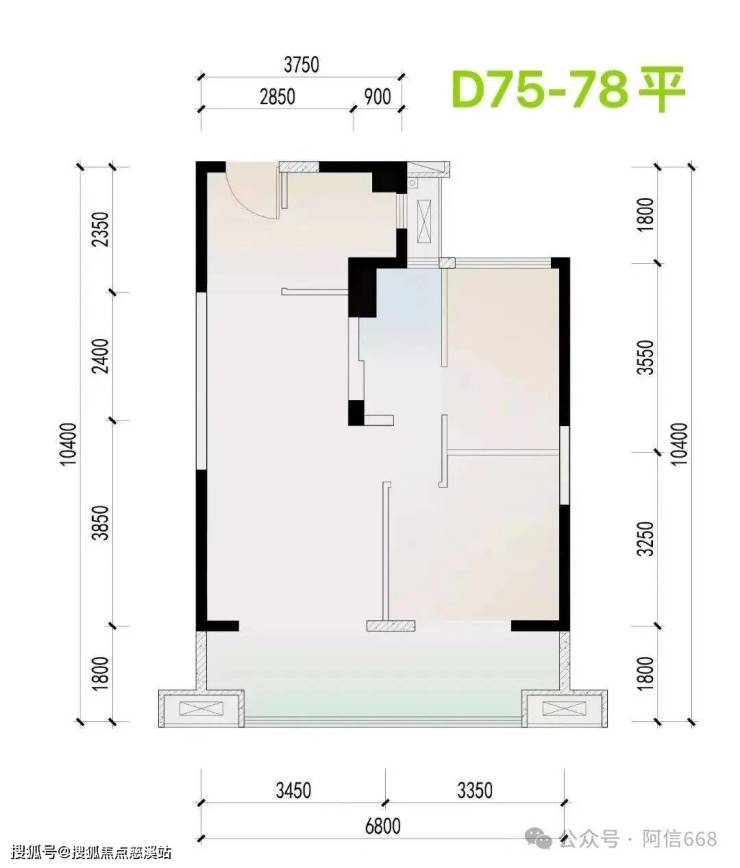 2、78平米两房一卫一阳台