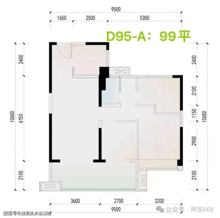 2、95平米三房一卫
