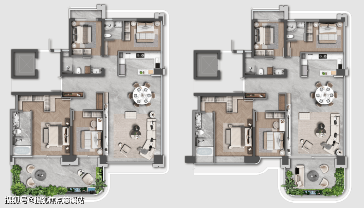 项目涵盖建面约190-430㎡面积段户型,均配备独立电梯厅。300㎡以上的户型额外设置了主人与后勤分离的双动线,并为主卧配置了独立的男女主人衣帽间及全屋独立卫生间。所有户型均注重实用功能,标配储藏间、家政间以及独立的中西厨空间。客厅面宽5.5至9.1米,尺度开阔,并附赠面积超过30㎡的私属空中花园。在建筑结构上采用框架剪力墙体系,确保主要居住空间无承重墙障碍,便于后期业主根据家庭结构调整房间格局,实现全生命周期场景。