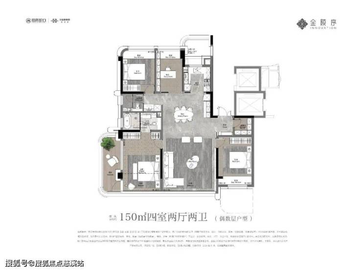 2. 建面约 150㎡四房两厅两卫(高层):轻奢成长型藏品