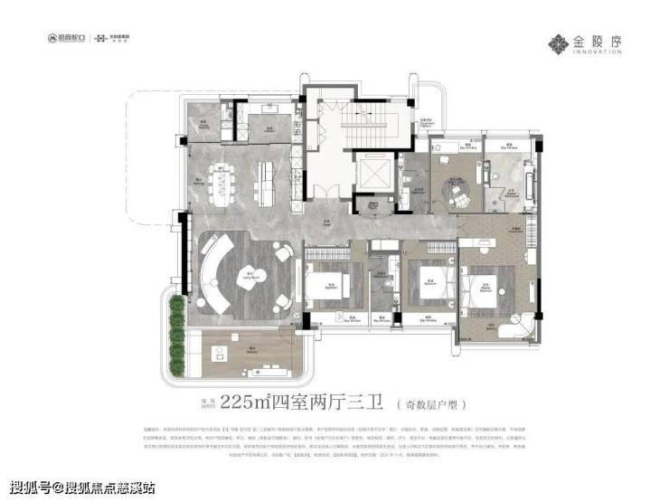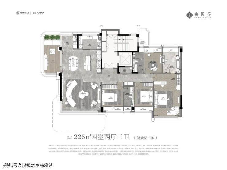 1. 建面约225㎡四房两厅三卫(洋房):河西中的洋房孤品