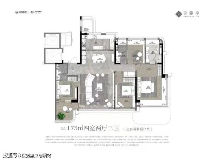 3. 建面约175㎡四房两厅三卫(高层):环幕视野的社交主场