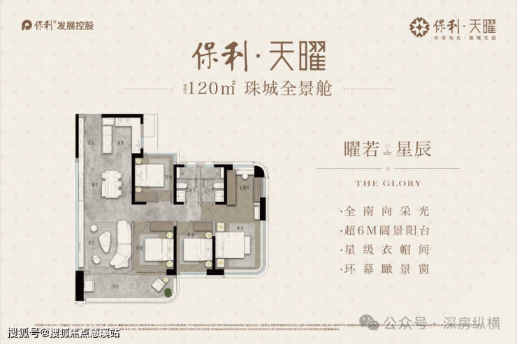 ▲保利天曜“全景舱”设计——以120㎡户型为例
