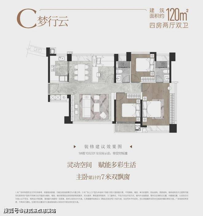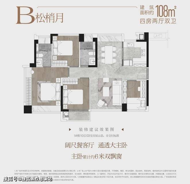 而108㎡和120㎡的四房两卫户型,则更加注重居住的舒适性与功能性。无论是西边套的108㎡户型,还是东边套的120㎡户型,都充分利用了空间布局的优势,实现了多面采光与良好的通风效果。每个房间都设计有飘窗或阳台,让室内空间更加开阔明亮。