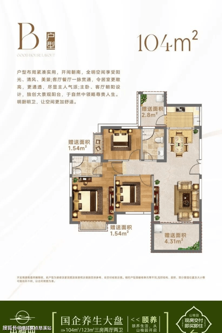 产品户型:104/123㎡三房两厅