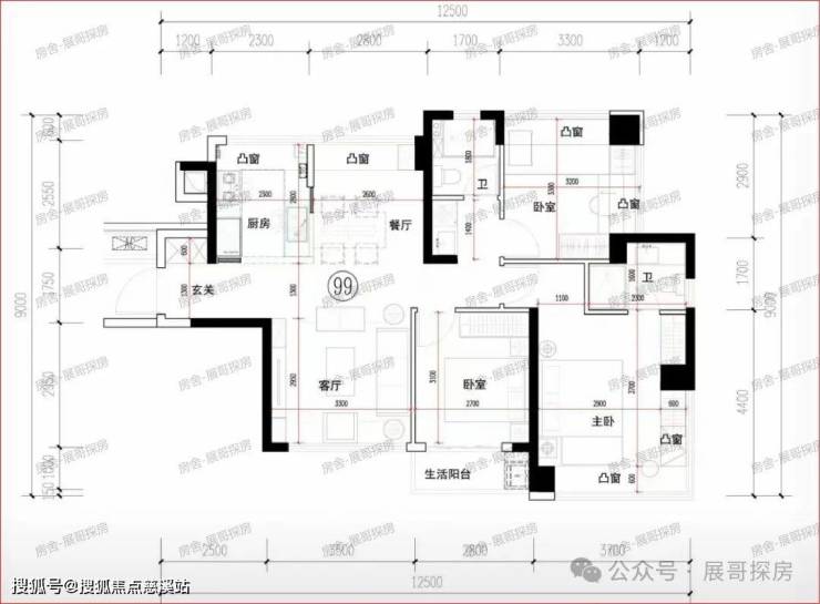 项目四栋高层规划为87-99平三房产品,其中87平三房两厅两卫为中间套,99平三房两厅两卫为边套产品,二者合计约520套,占比约85%;