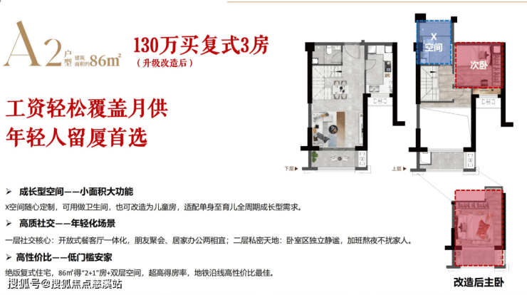 【产品面积】建面约86-135㎡复式“2+1”房、4房