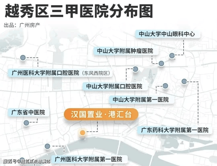 越秀区拥有352家医疗机构,占全市1/3医疗资源。港汇台,2公里范围内就有4家三甲医院(孙逸仙医院、广医一院、广东省中医院、中大附属肿瘤医院)驾车约10分钟即达,为健康保驾护航。