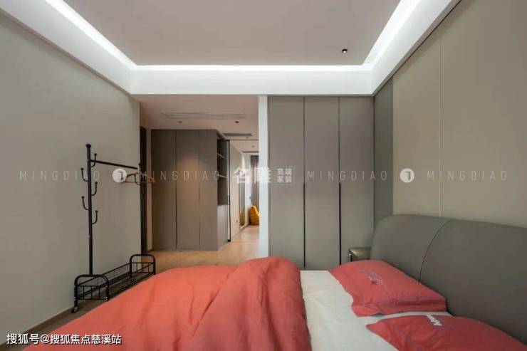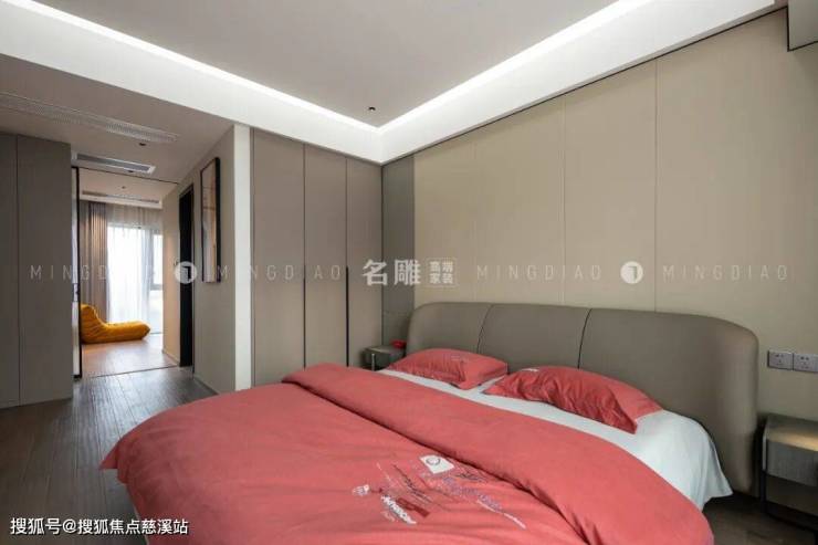 整个卧室的设计,从色彩到材质,都充满了温暖的气息。床头采用柔和的肤色面板为背景,错落的体块结构增强空间层次感,轻柔的床品让居住者在每一寸触摸中都能感受到家的温暖。