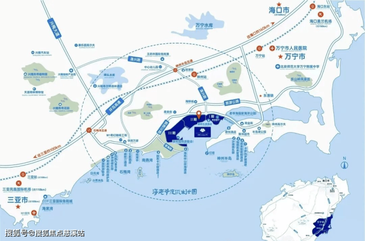 地理位置:地处万宁市神州半岛西北角,背枕原生山体,南眺老爷海,东侧与石梅湾生态湾区形成天然对景,占据老爷海与外海相连的出海口,尽揽约1.6公里海岸线。