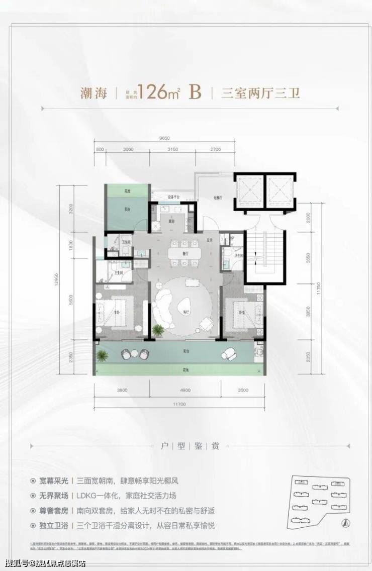 5、户型方正,三个卫生间起,超大尺度阳台。