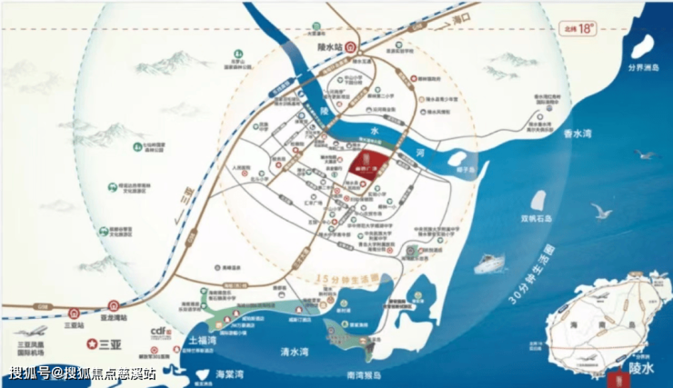 【绝佳地理位置】坐拥“三湾三岛一山一水”,北纬18°以南的“珍珠海岸美丽陵水”项目位于陵水城市中心,周边坐拥8万平米商业综合体海韵广场、河堤公园、体育广场、医院、网红知音桥,生活配套成熟,交通便利。