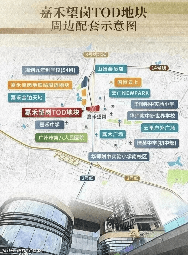 项目详情:项目直线距离嘉禾望岗地铁站仅约50米,2号线、3号线、14号线三线交汇 ,未来还将连接18号线北延段。周边商业氛围浓厚,自建约2000平方米社区商业街区,步行可达云门NEW PARK购物中心,东北侧在建白云首个山姆会员超市 。教育资源也很丰富,配建6班幼儿园,北侧一公里范围内规划54班中小学,省实、华新、培英等名校环绕。医疗方面,南侧紧邻广州医科大学附属市八医院,3公里内还有多家三甲医院为健康护航。
