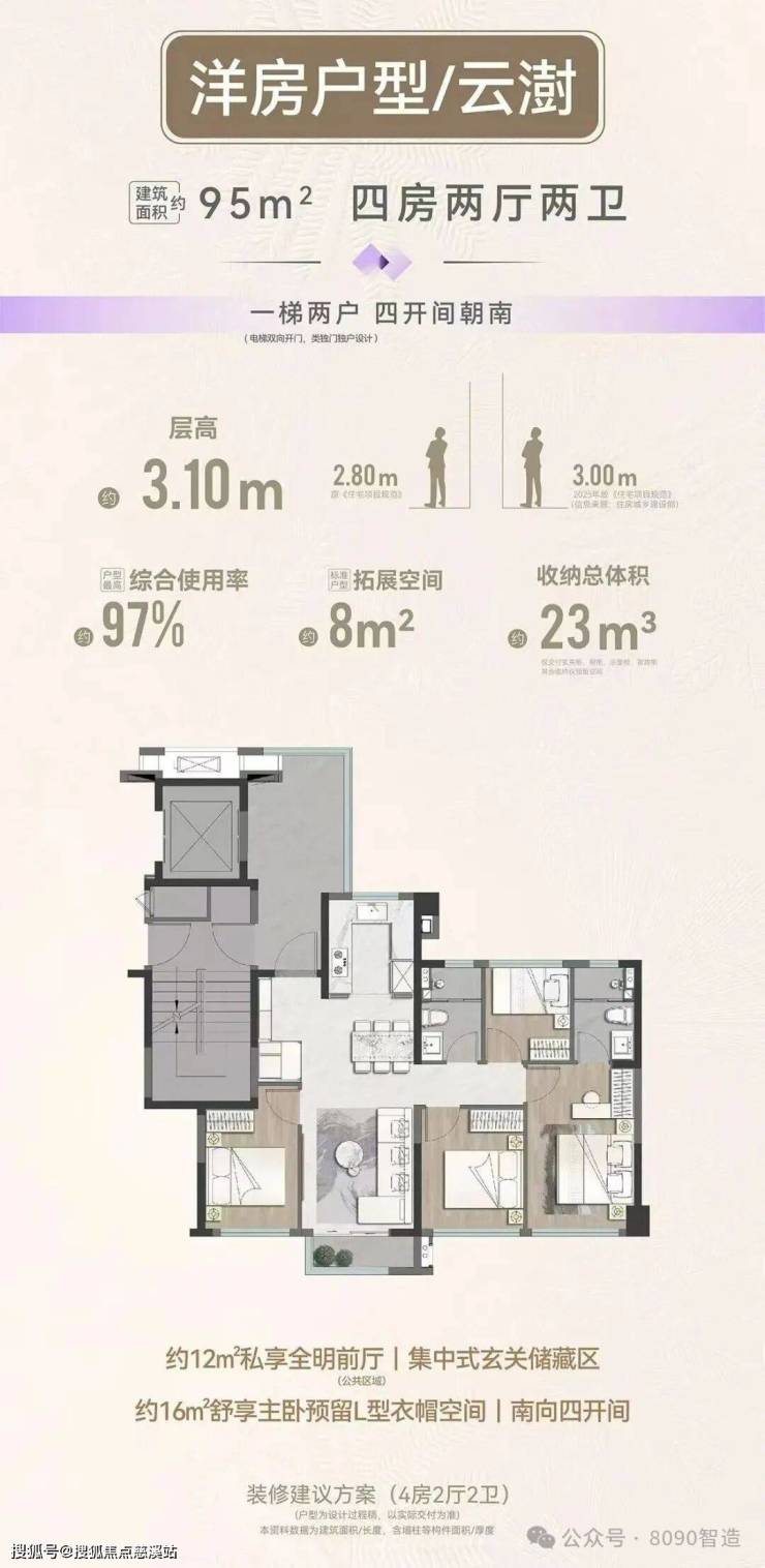 95平四房两厅两卫