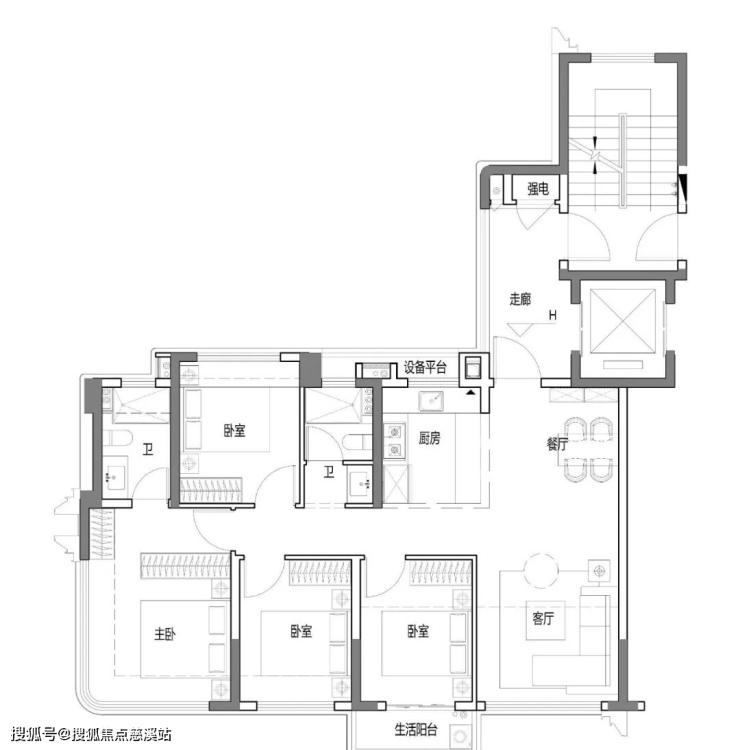 125㎡第四代洋房户型:为 8 层洋房中的四代住宅,配有双套卧、3 卫,还附带 20㎡以上的入户花园,空间奢阔,兼具实用性与舒适性。