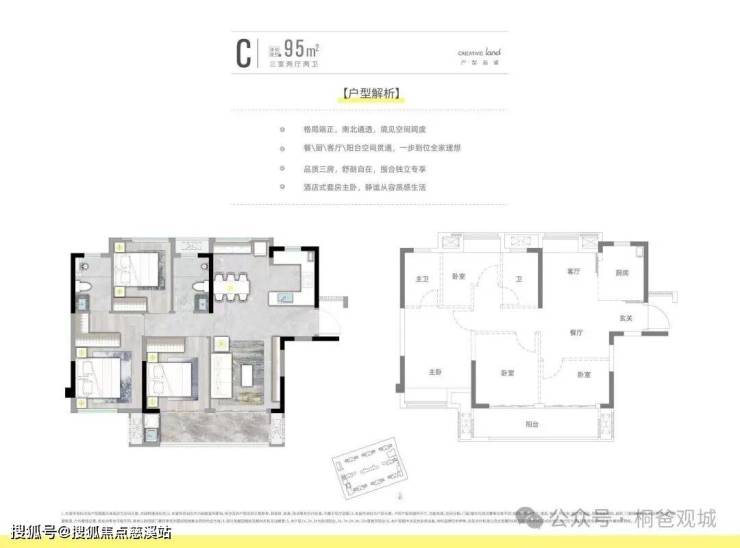 项目的产品户型主要是83-95平三房刚需产品,户型方正,长开间短进深,其中89和95平还是端头产品采光和视野更加。
