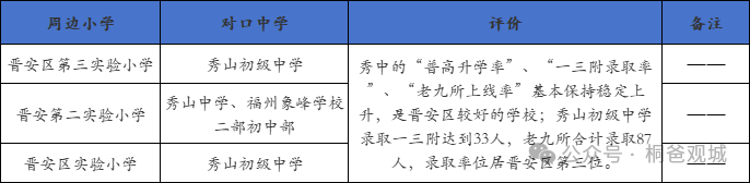 教育配套:临近小学有晋安区第三实验小学(0.5km)、晋安第二实验小学(0.5km)、晋安区实验小学(1.4km)等,教育实力在晋安区处于中位水平;由于该项目的对口学区尚没有确定,购房者可以持续关注教育局发布的相关文件。