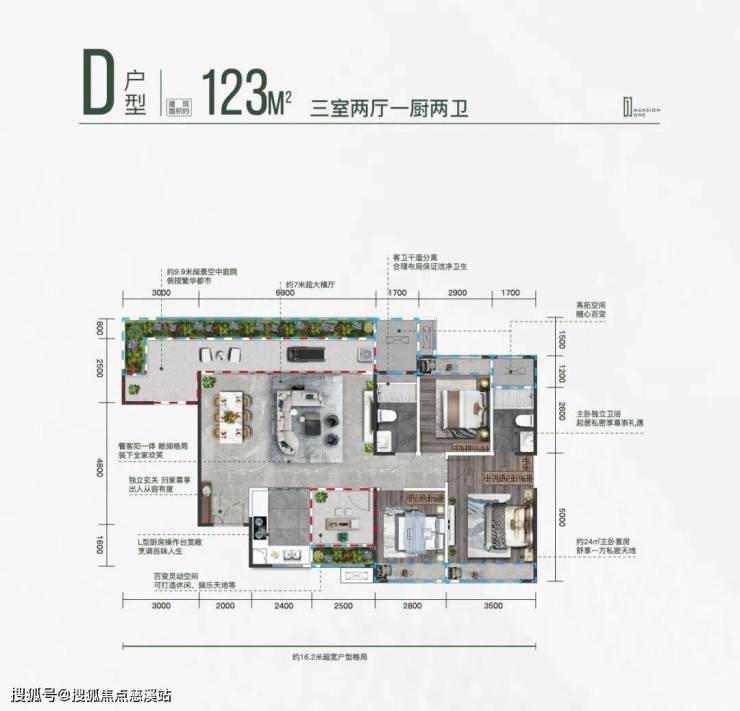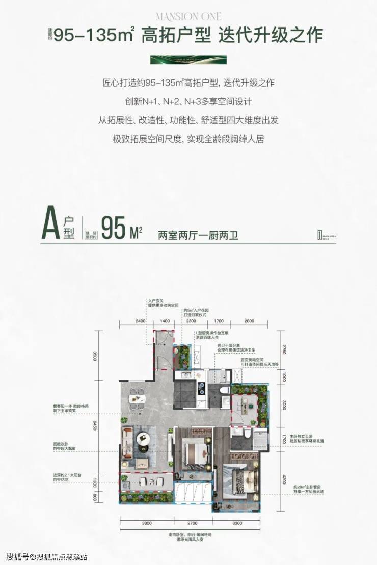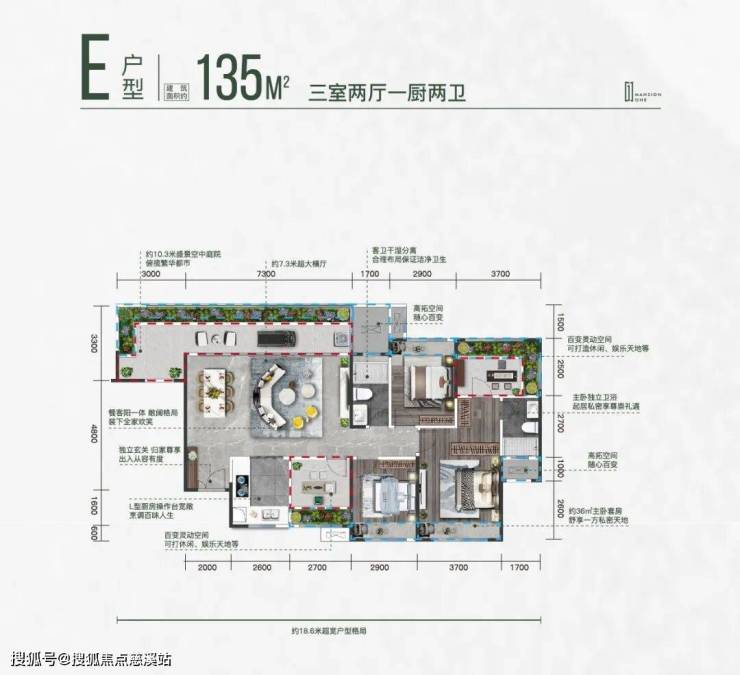 亮点:135㎡买三房送三房”得6房,得房率107%,利用阳台、花池、设备平台等可改造空间。