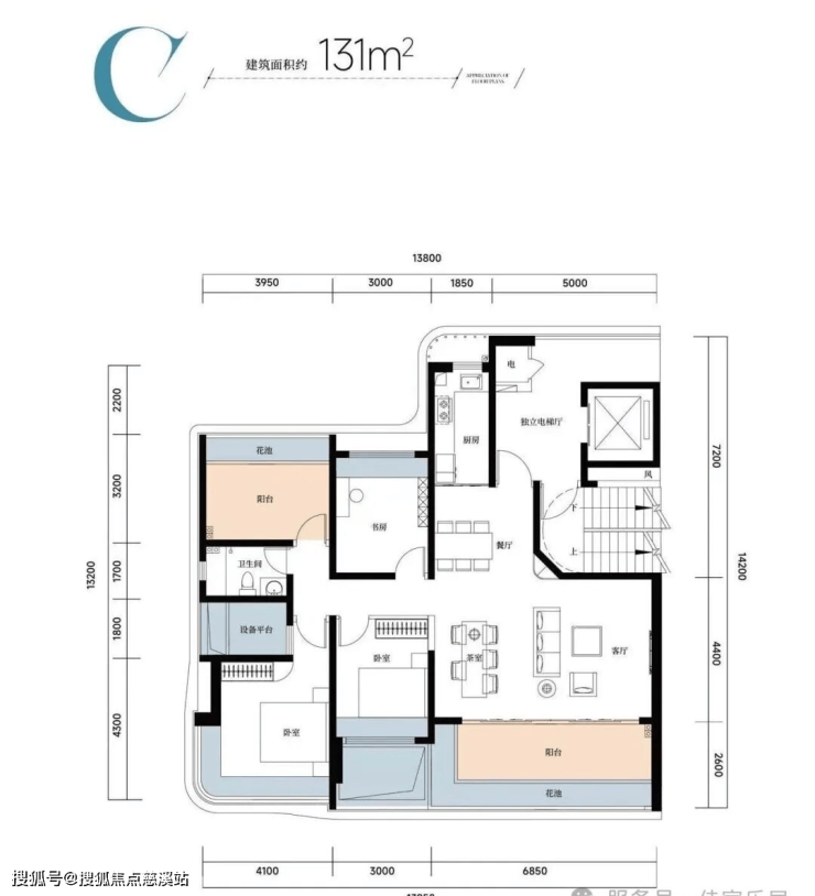🏠C户型: 约131㎡四房两厅两卫