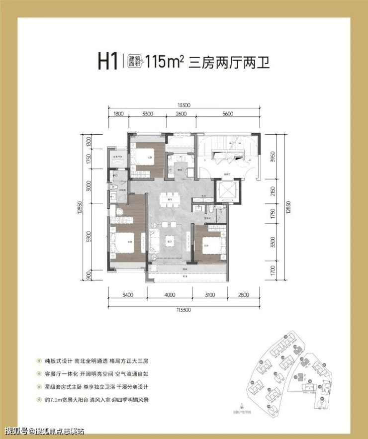 115㎡:三房两厅两卫