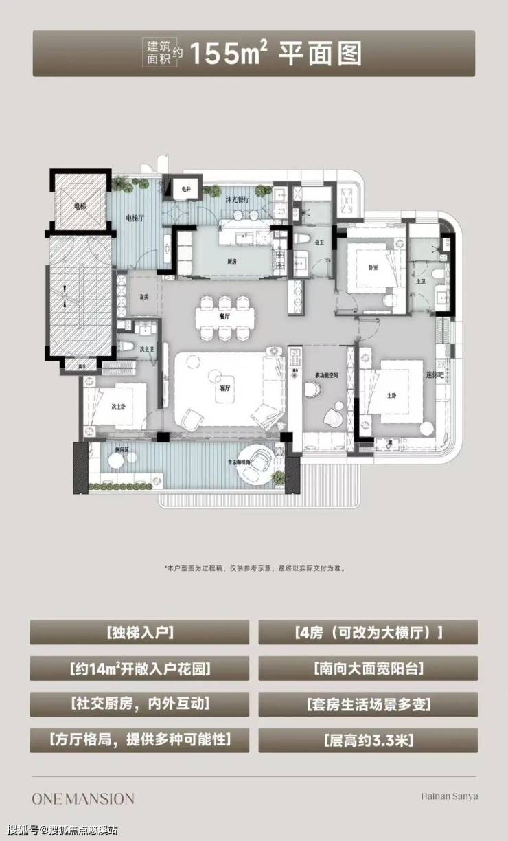 155㎡四房 独立电梯入户 + 约14㎡入户花园